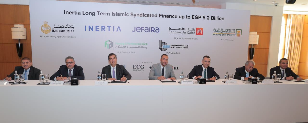 A banking alliance comprising Banque Misr, Banque du Caire, National Bank of Egypt (NBE), Housing & Development Bank, and Suez Canal Bank has successfully concluded a long-term joint Islamic financing agreement under the Mudaraba structure in favor of Inertia Egypt for Real Estate Development. The financing, amounting to EGP 5.2 billion with a maximum term of six years, will fund part of the investment cost of the Jefaira project, located in Ras El Hekma, North Coast.