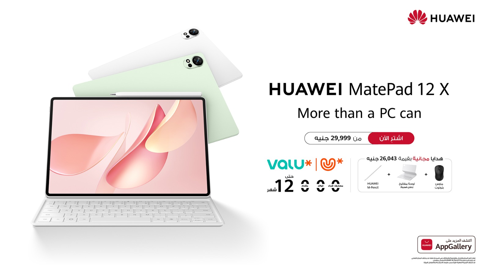 To further enhance accessibility, users can buy now the HUAWEI MatePad 12 X. Priced starting at 29,999 EGP for the standard screen, customers can buy the tablet and purchase in cash or through Valu with zero fees, no down payment, and flexible payment plans of up to 12 months, this offer through Huawei’s HES, online store and select retailers.
