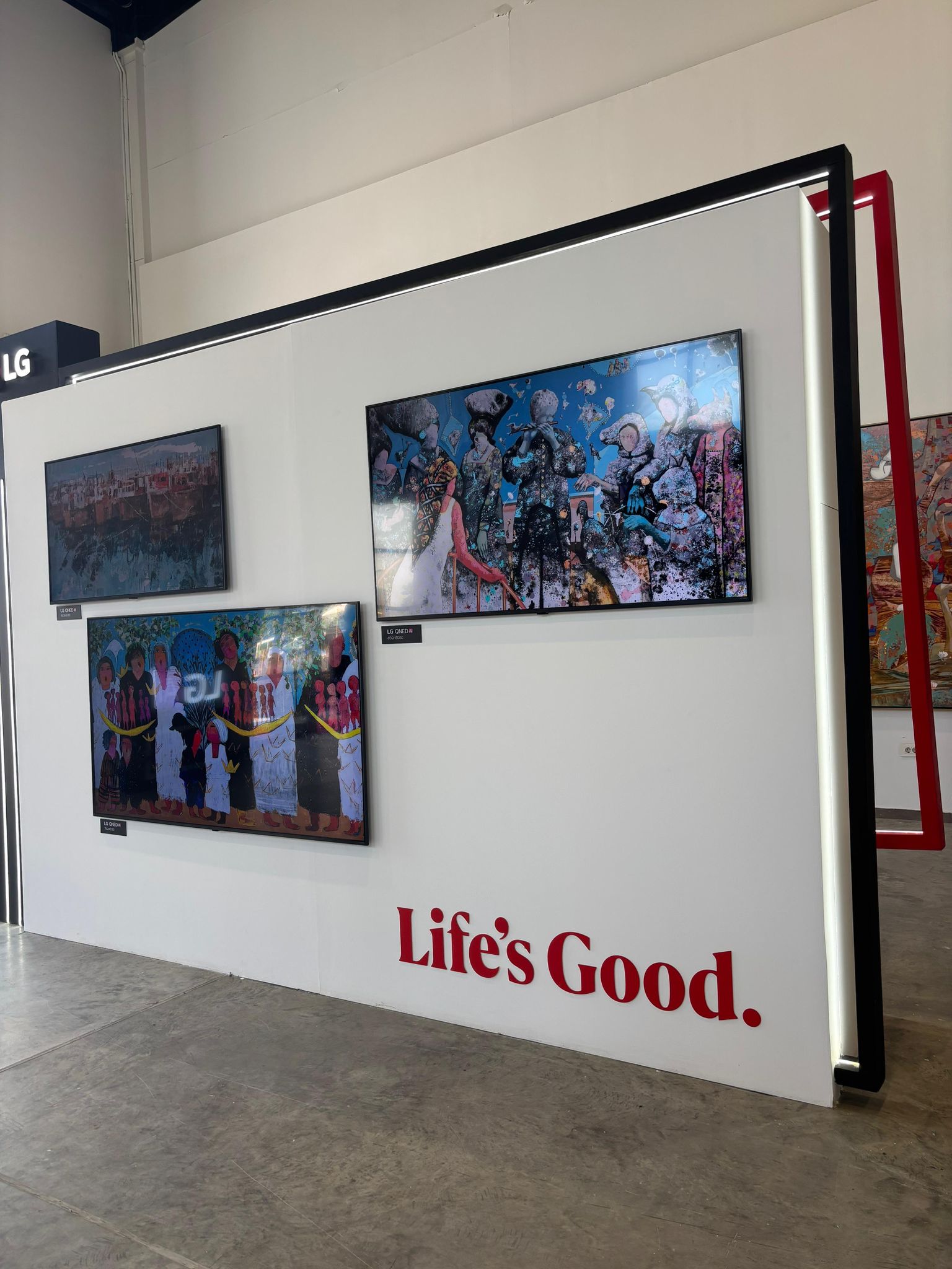 The exclusive showcase highlighted the fusion of LG’s advanced display capabilities with contemporary art. The centerpiece of this artistic convergence was LG’s next-generation line of OLED and QNED TVs, featuring a new 100-inch model. These large-scale screens are positioned as the ultimate modern canvas, providing the perfect black, infinite contrast, and professional-grade color accuracy necessary to render complex digital and AI-generated masterpieces authentically.