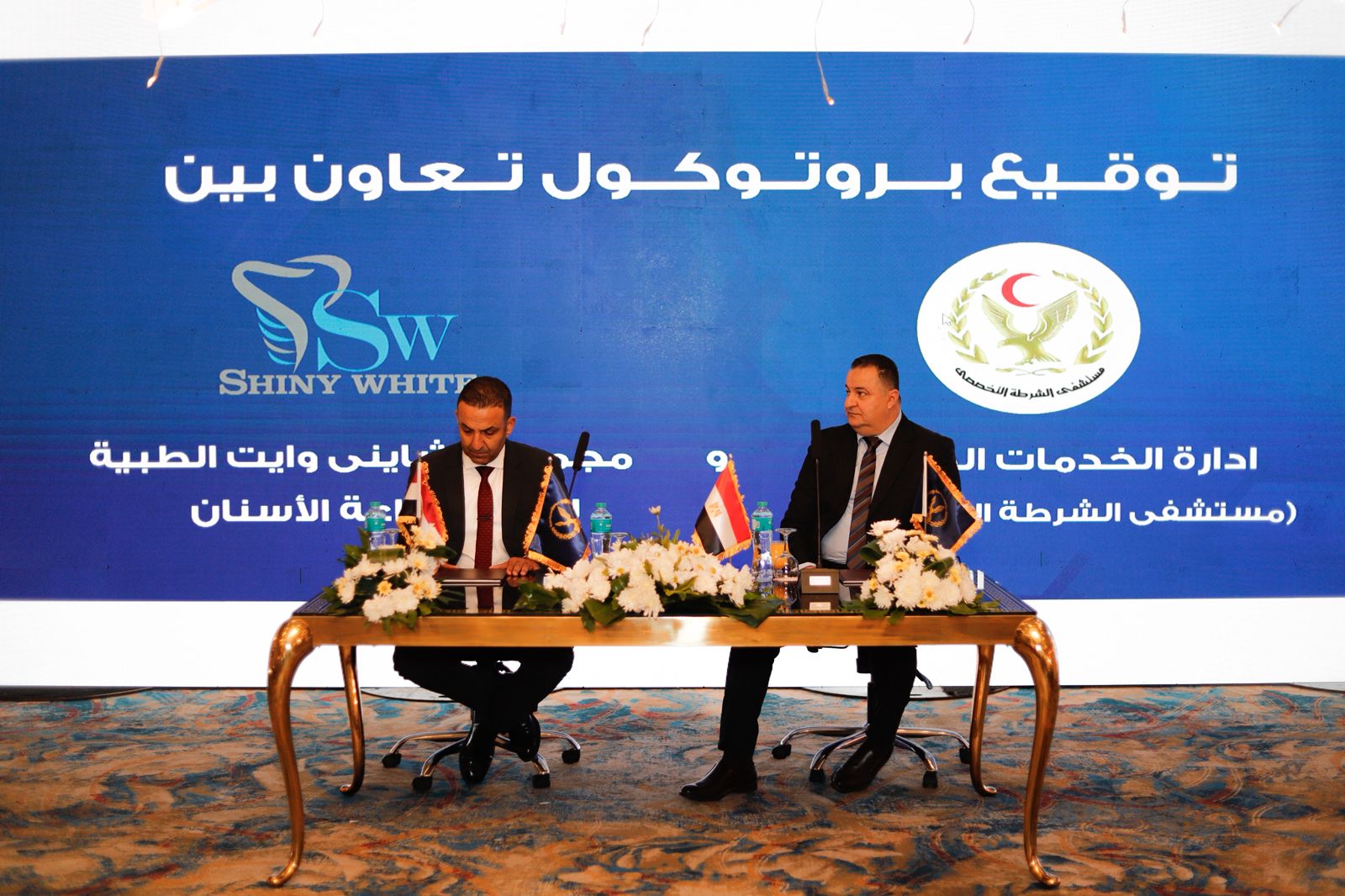 The protocol was signed by Major General Dr. Ali Younes, Director of the Specialized Police Hospital, and Prof. Shady Ali Hussein, Founder and Board Member of Shiny White Dental Centers.