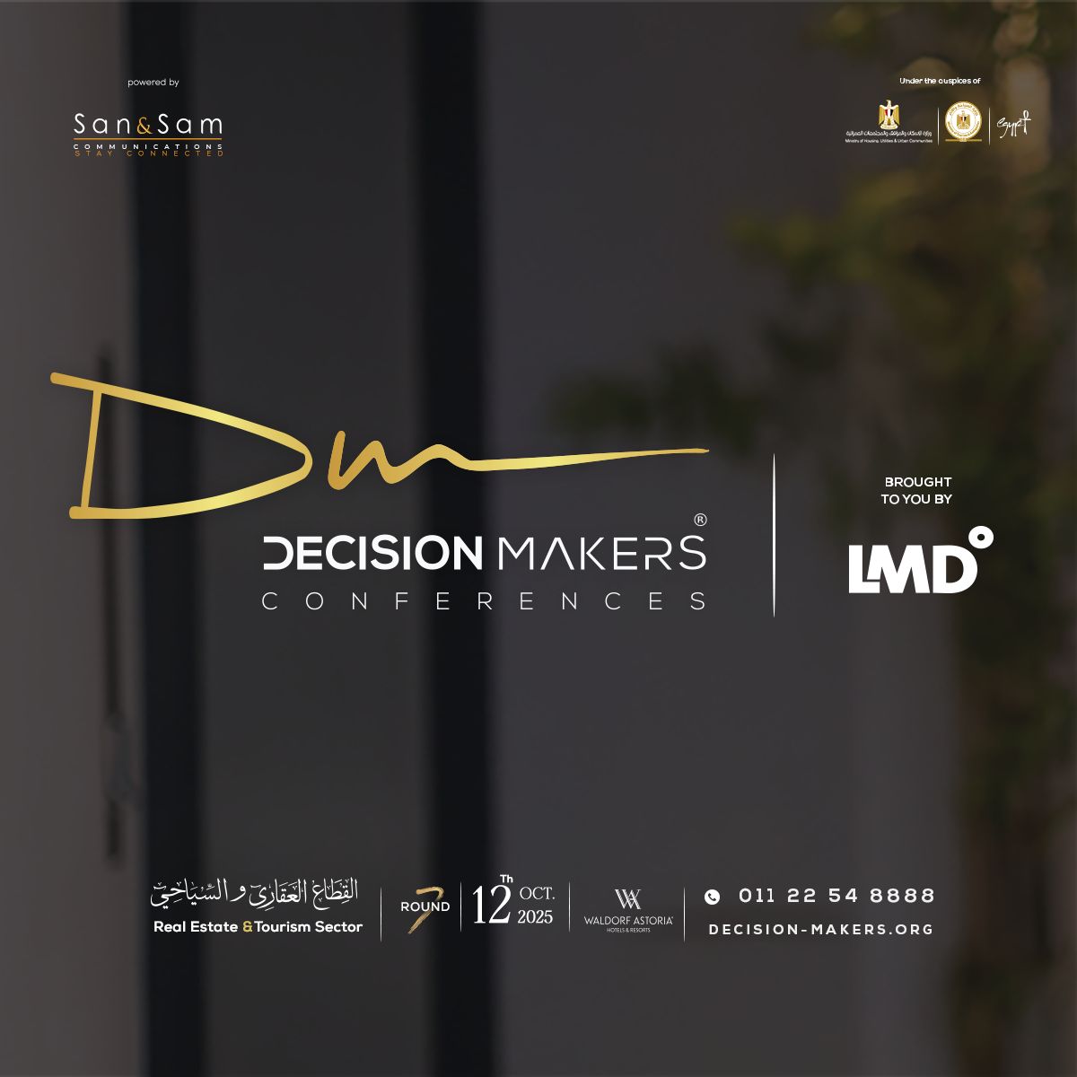 Under the patronage of the Ministry of Housing, Utilities and Urban Communities, the Ministry of Tourism and Antiquities, and the Egyptian Tourism Promotion Authority, and with the participation of a distinguished group of investors, company leaders, executives, experts, academics, and media representatives, the seventh edition of the “Decision Makers Conference” will take place on Sunday, October 12, at the Waldorf Astoria Hotel in Cairo, under the theme: